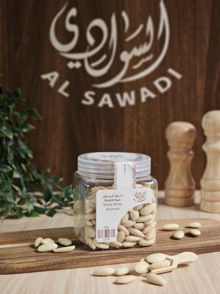 احصل الآن على علبة لوز أبيض مقشر حبة كاملة من متجر محامص ومطاحن السوادي، وتمتع بأجود أنواع المكسرات الطبيعية المختارة بعناية.